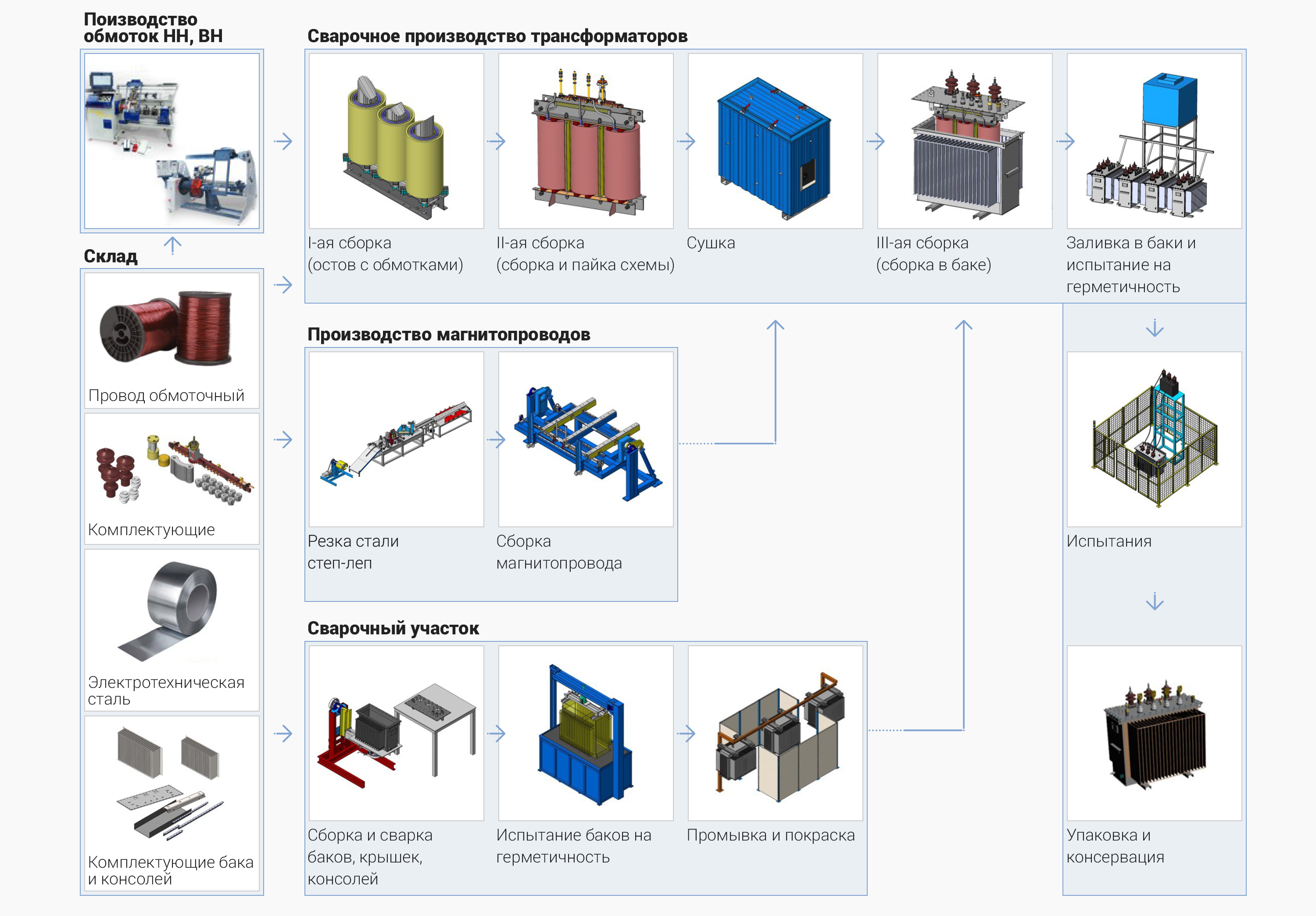 Производство полного цикла ТМГ 250-2500 Схема работы предприятия