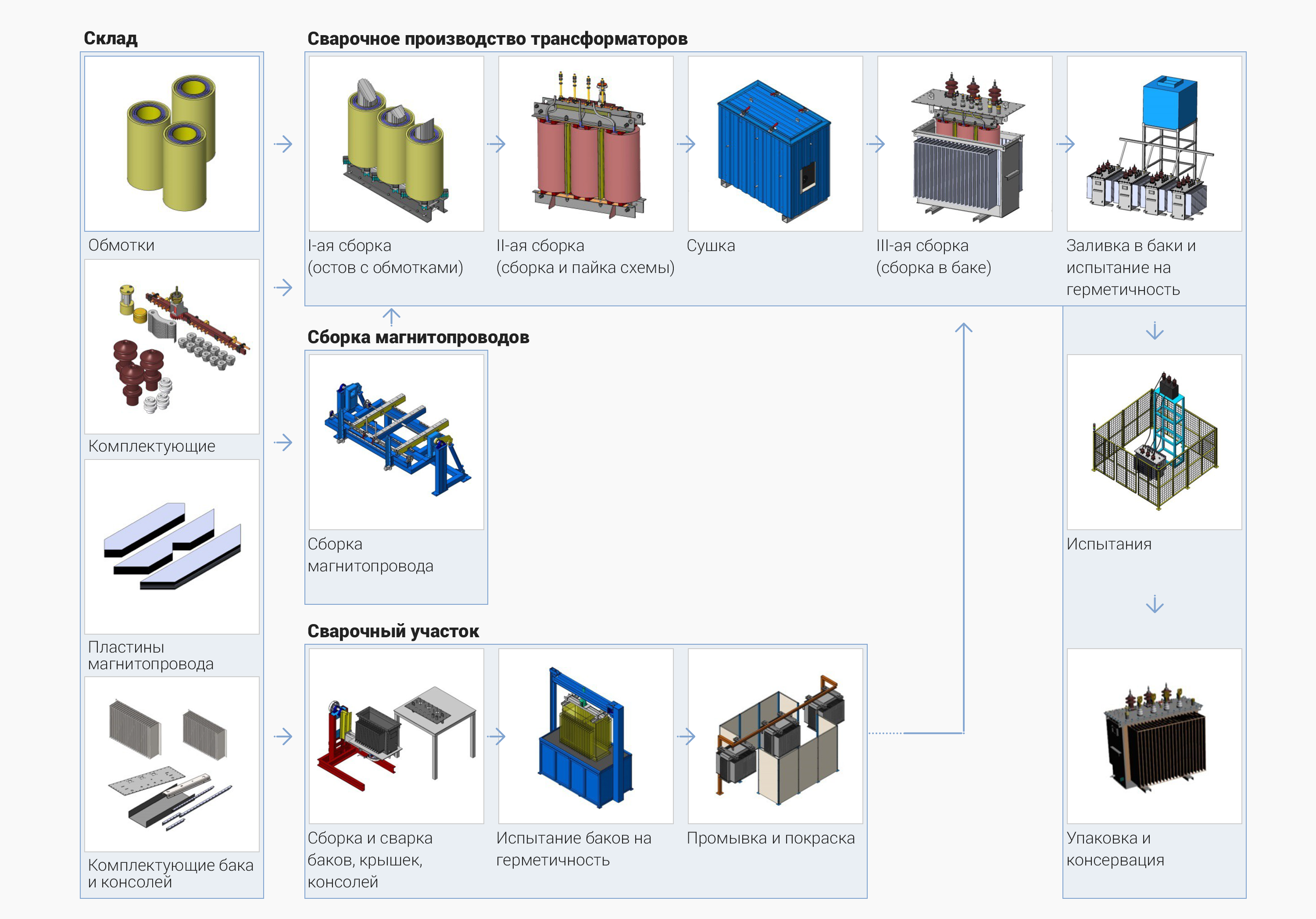 Сборочное производство ТМГ 250-2500 Схема работы предприятия